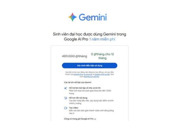 Google tặng 1 năm miễn phí gói Gemini Pro cho sinh viên đại học cả nước