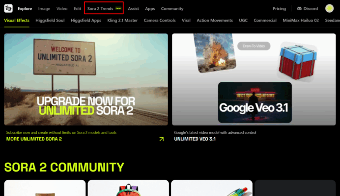 Trải nghiệm SORA 12s (720p) miễn phí trên Higgsfield