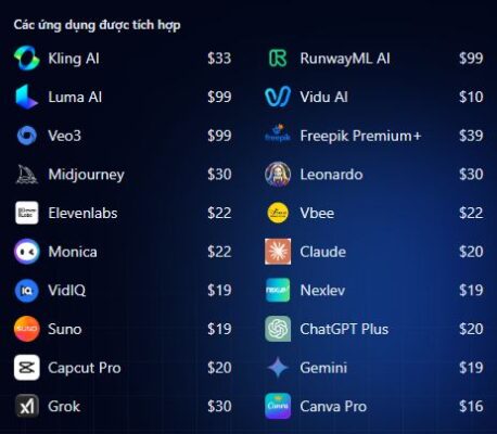 | 1 | RunwayML AI | $99 | Tạo Video (Video Gen) |